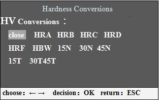 The NG1000 series also has the capabilities of displaying a converted Vickers value into other popular hardness testing scales. These scales include HRA, HRB, HRC, HRD, HRF, HBW, HR15N, HR30N, HR45N, HR15T, HR30T and HR45T.