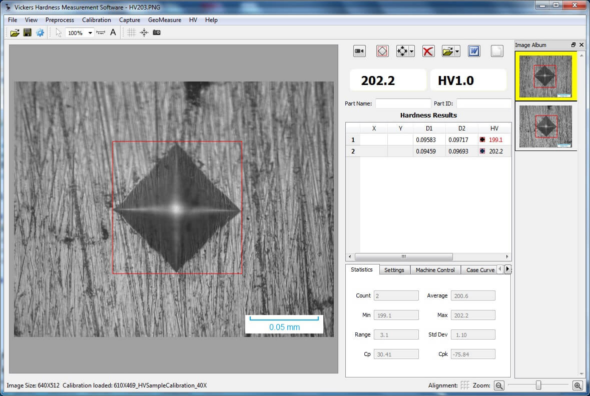 The NG1000CCD VickSoft software allows you to view all of your hardness results in a easy viewing panel. You can store and look back at your indentation images for re-measuring when necessary. The NG-VickSoft also allows you to plot your case depth curves and create reports for your hardness testing measurements.